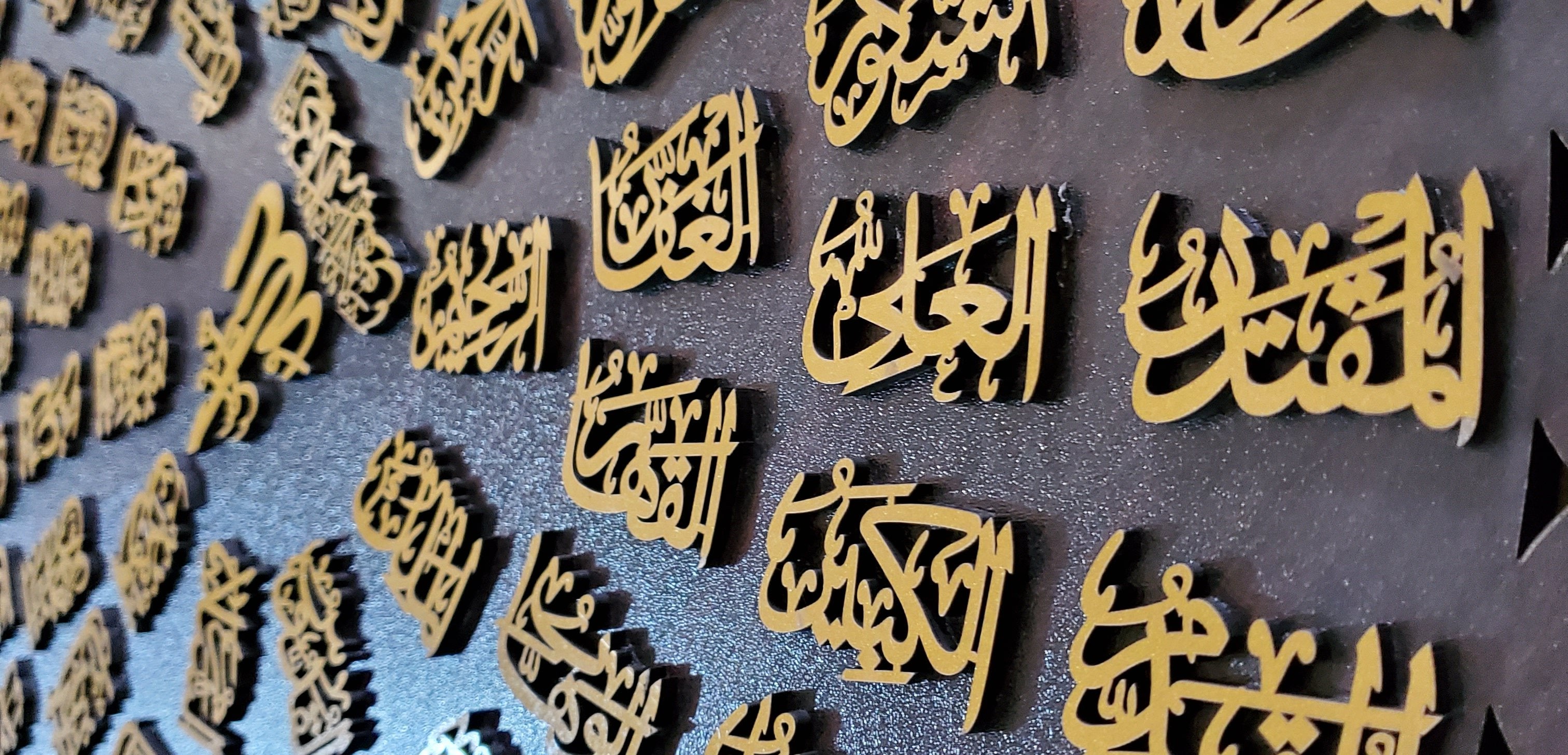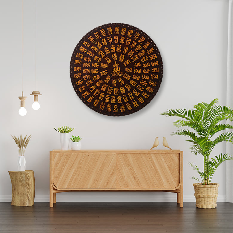 Stunning design of all Asma ul Husna, each name written individually, made with premium quality plywood with extreme accuracy and precise strokes of Laser Cutting Machines. Its intricate design and flawless finish make it a must-have for any room wall and house interior.